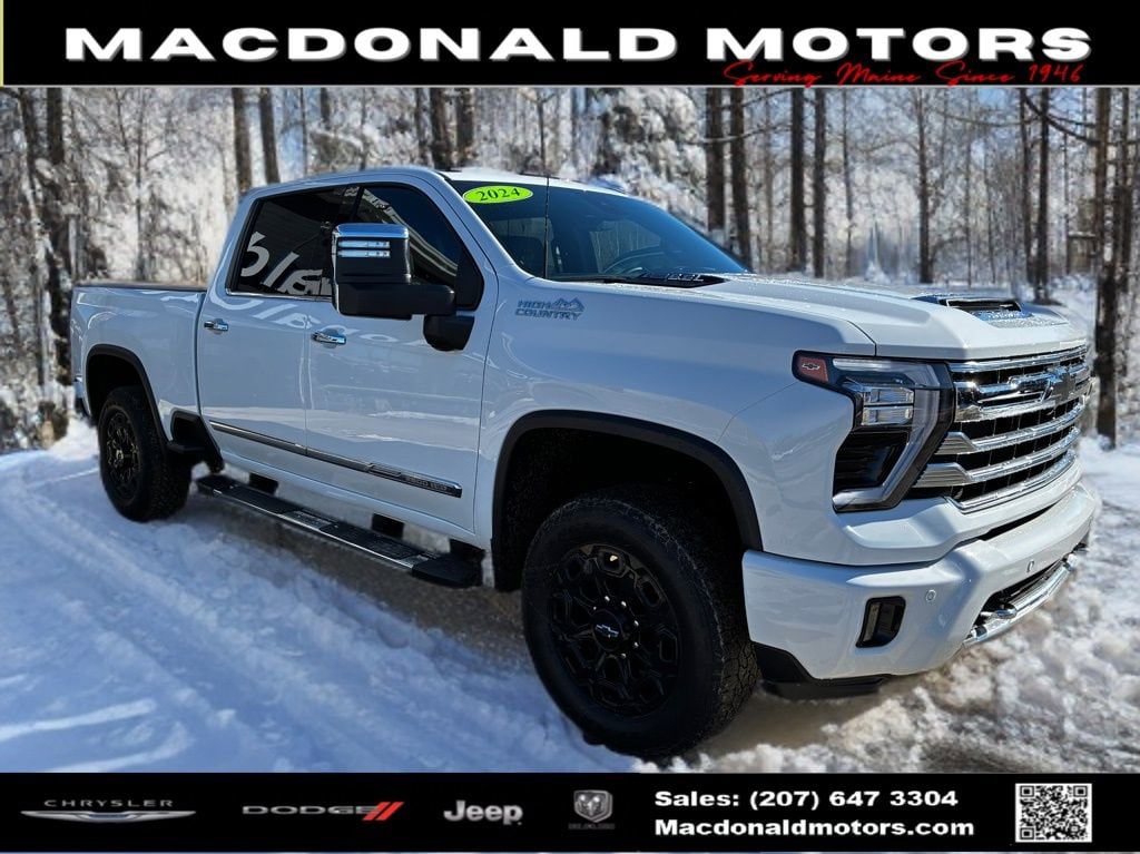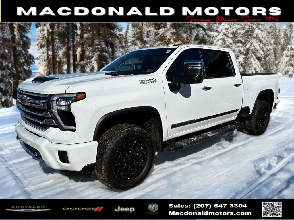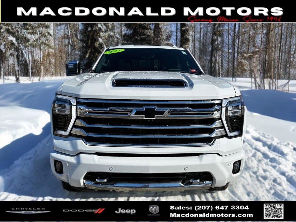 Summit White 2024 Chevrolet Silverado 2500HD High Country 4WD 10-Speed Automatic 6.6L V8 10-Speed Automatic, 4WD, Jet Black Leather.